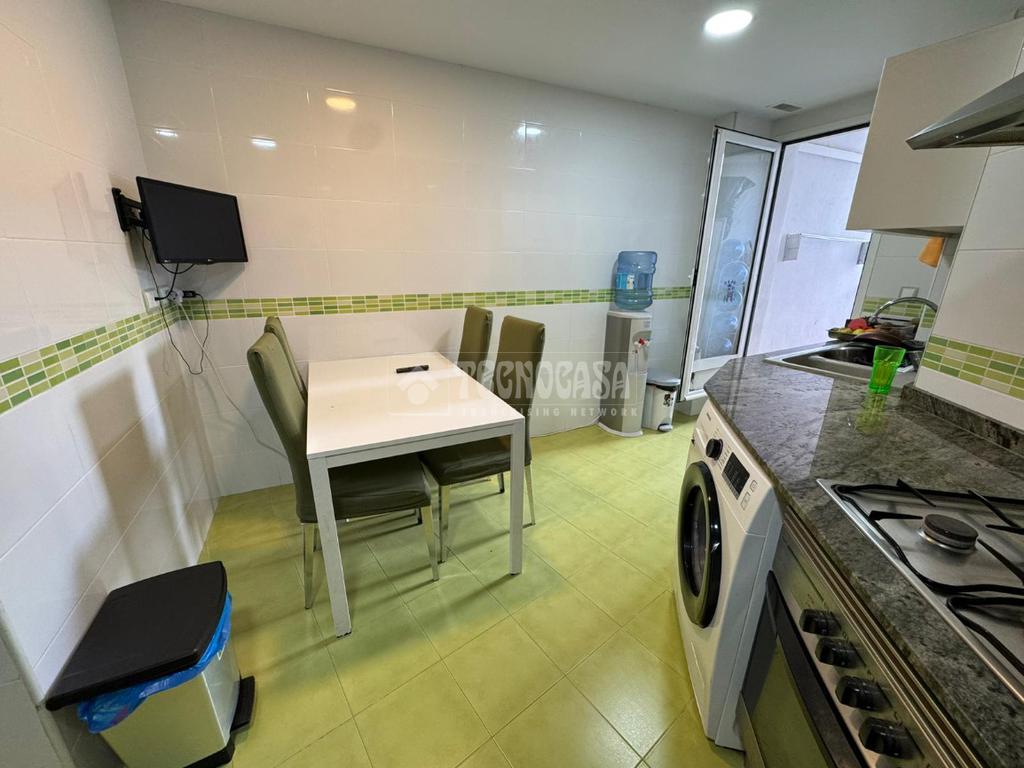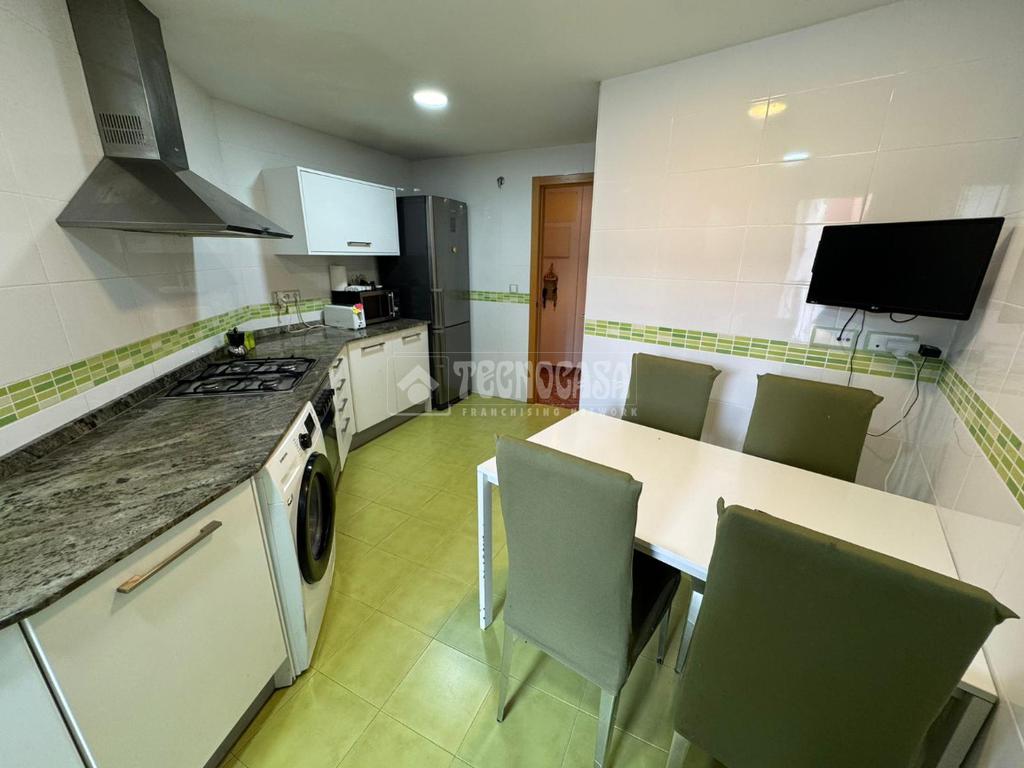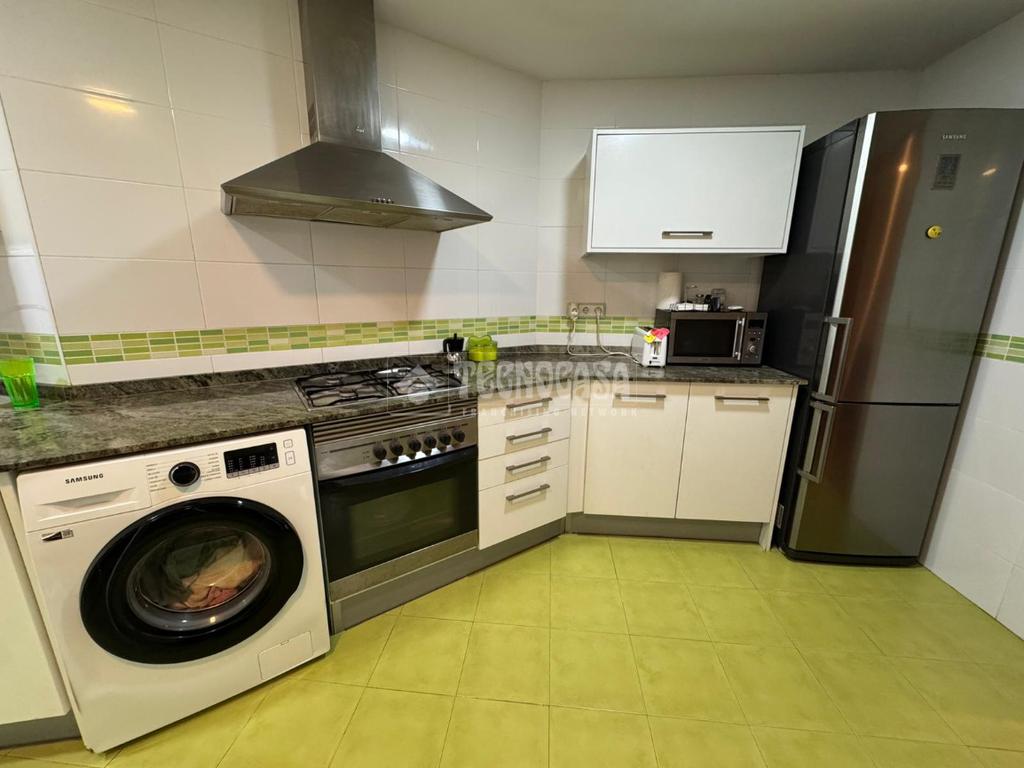 La cocina es especialmente espaciosa y se entrega totalmente equipada con electrodomésticos, lista para su uso desde el primer día. Además, cuenta con acceso a una práctica terraza, ideal como zona de desahogo, lavandería o incluso para disfrutar de momentos al aire libre.